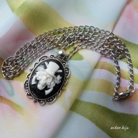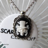 Кулон-камея из полимерной глины с изображением черепа в шляпе