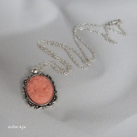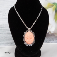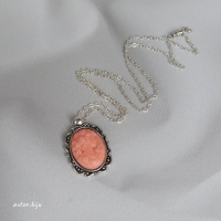 Кулон-камея из полимерной глины с изображением женского профиля, цвет - персиковый