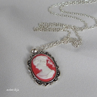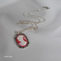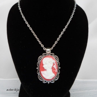 Кулон-камея из полимерной глины с изображением женского профиля, цвет фона - розовый