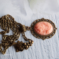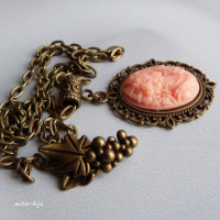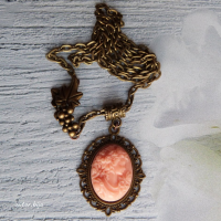 Кулон-камея из полимерной глины с изображением женского профиля, цвет - персиковый