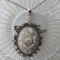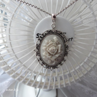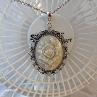Кулон-камея из полимерной глины с изображением розы, цвет - белый перламутровый