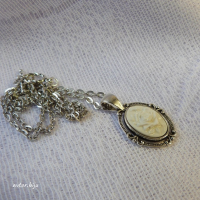 Кулон-камея из полимерной глины с изображением розы, фон - белый