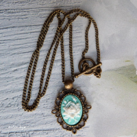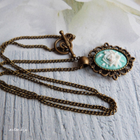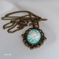 Кулон-камея из полимерной глины с изображением розы, цвет фона - мятный
