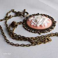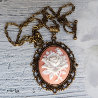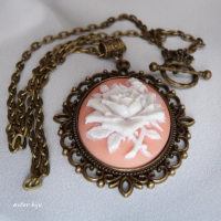 Кулон-камея из полимерной глины с изображением розы, фон - персиковый