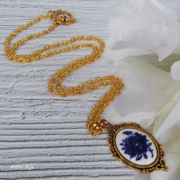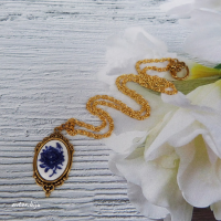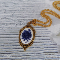 Кулон-камея из полимерной глины с изображением синей розы, цвет фона - белый