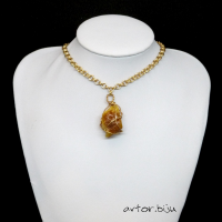 Кулон с подвеской из янтаря, оплетенного проволокой