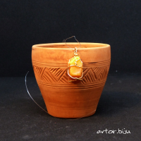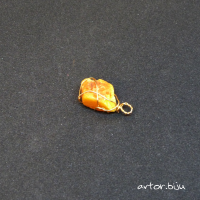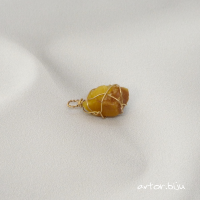 Подвеска для украшений с натуральным янтарём, оплетенным проволокой. Позолота. Подойдет на цепочку до 5 мм.