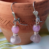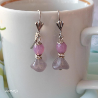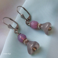 Серьги с подвесками из чешских бусин (граненых и в форме цветков) и с маленькими хрустальными бусинами