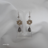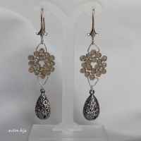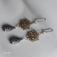 Серьги из хрустальных бусин с ажурными винтажными подвесками.