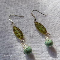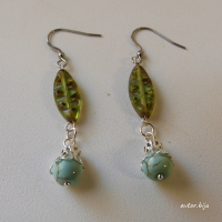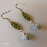 Серьги из чешских бусин в форме листочков и говлита под бирюзу