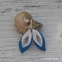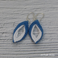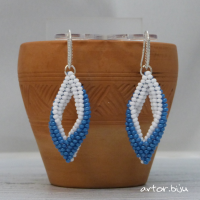 Серьги ромбы из голубого и белого бисера
