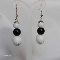 Серьги с натуральным агатом белого и черного цвета (бусины)