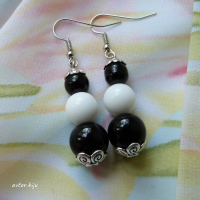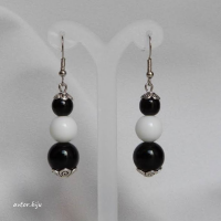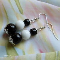 Серьги с натуральным агатом белого и черного цвета (бусины)
