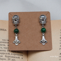 Вы пишете отзыв на товар: Серьги с черепом и малахитом под серебро