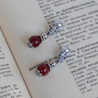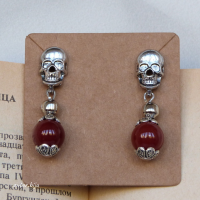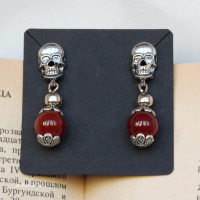 Серьги с черепом и бусиной сердолика