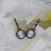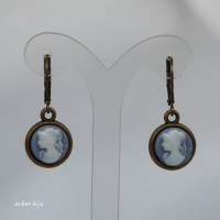 Серьги с камеями (девушка), фон - сиреневый