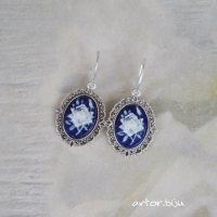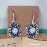 Серьги с камеями из полимерной глины с изображением цветка розы